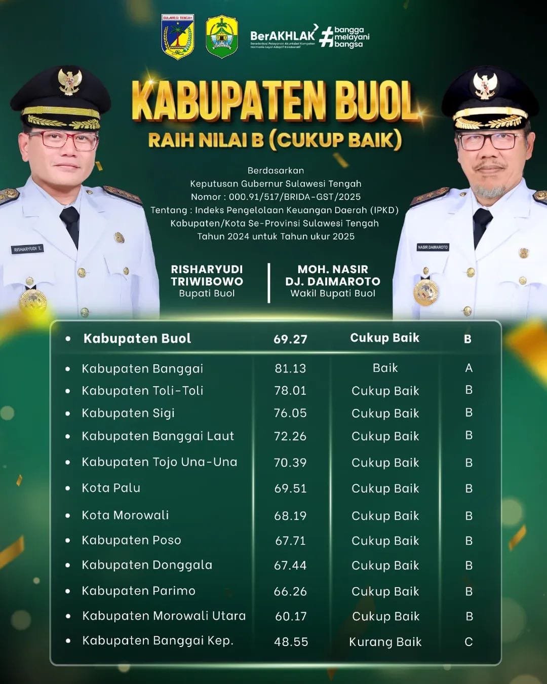 Kabupaten Buol Raih Predikat (B) IPKD, Kinerja Keuangan Daerah Cukup Baik