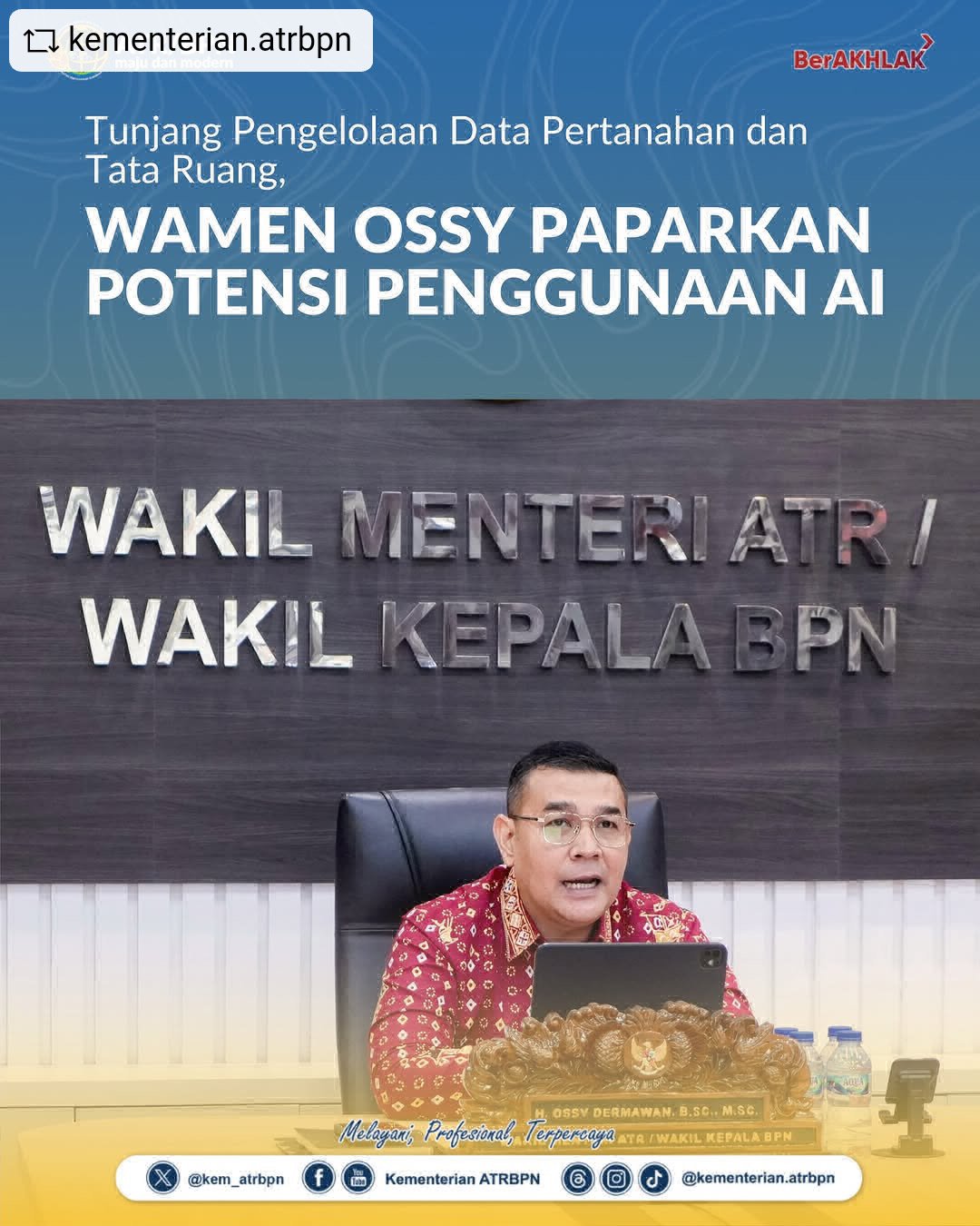 Tunjang Pengelolaan Data Pertanahan dan Tata Ruang, Wamen Ossy Paparkan Potensi Penggunaan AI