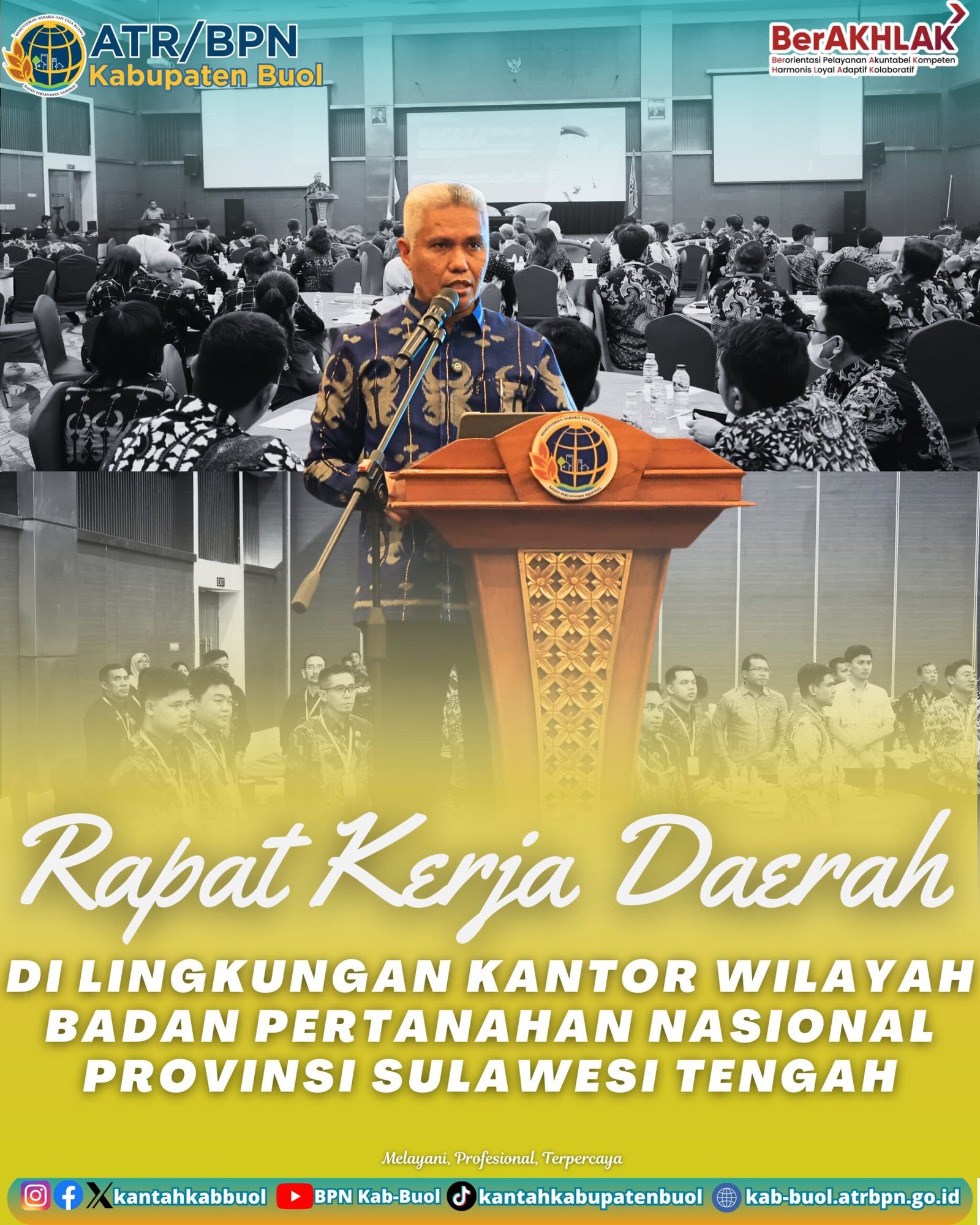 Rapat Kerja Daerah di Lingkungan Kantor Wilayah Badan Pertanahan Nasional Provinsi Sulawesi Tengah