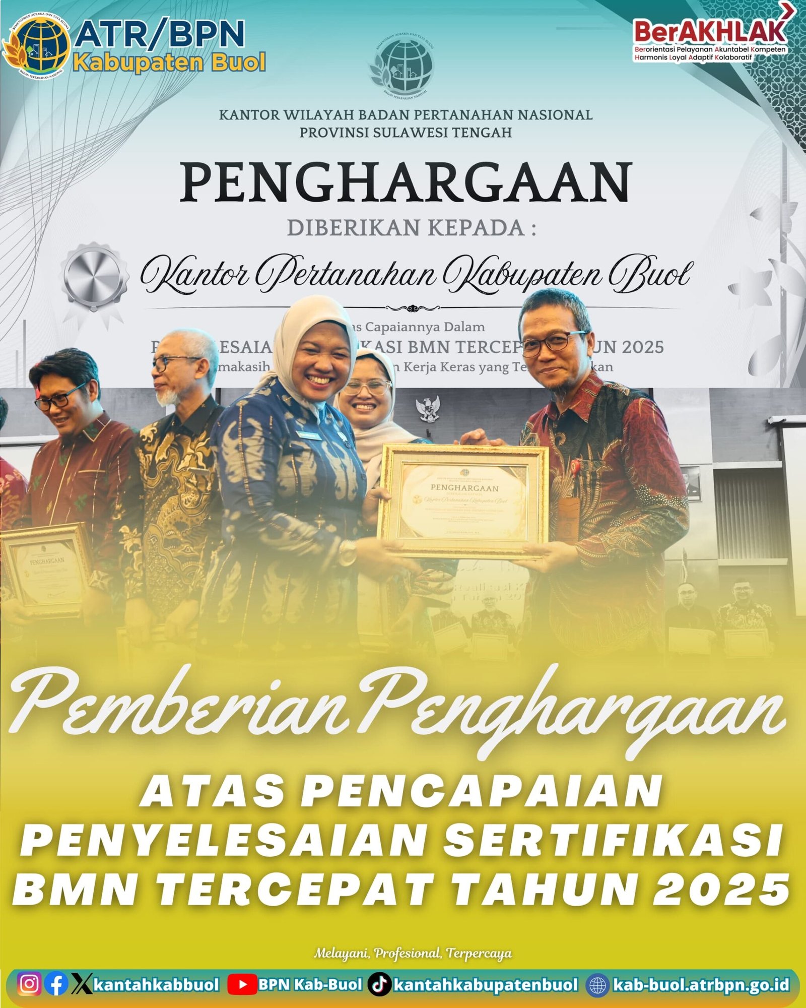 Palu, mediabusernews.com, – Rabu (11/02/2026) – Kantor Pertanahan Kabupaten Buol menerima penghargaan atas capaian penyelesaian sertifikasi BMN tercepat tahun 2025. Penghargaan ini diberikan dalam rangkaian kegiatan Rapat Kerja Daerah Kantor…