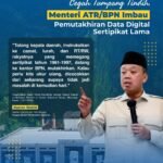 Jakarta, mediabusernews.com, – Menteri ATR/Kepala BPN, Nusron Wahid mengimbau bagi para pemilik sertipikat tanah yang terbit sebelum tahun 1997 agar melakukan pemutakhiran data agar tanah menjadi lebih aman terlindungi. #PemutakhiranDataTanah…