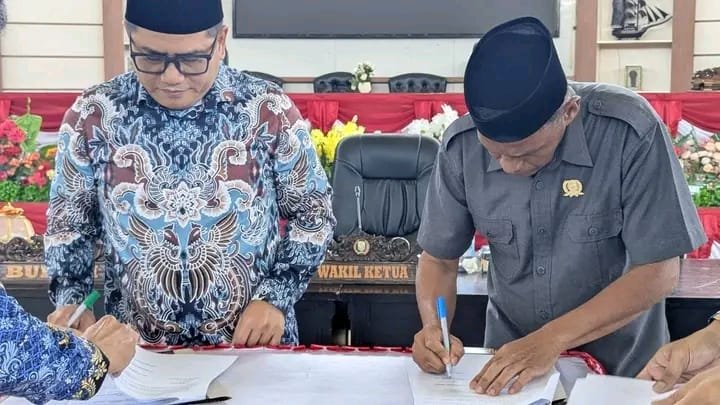 Buol, mediabusernews.com, – Bupati Buol H. Risharyudi Triwibowo Timumun MM, teken Memorandum of Understanding(MoU) bersama Wakil Ketua DPRD KabupatΓ¨n Buol, Karmin OY. Kaimo terkait Rancangan awal Pembangunan Jangka Menengah Daerah( RPJMD) tahun 2024 – 2029. kegiatan tersebut berlangsung di ruang sidang utama selasa,17/6/2025.