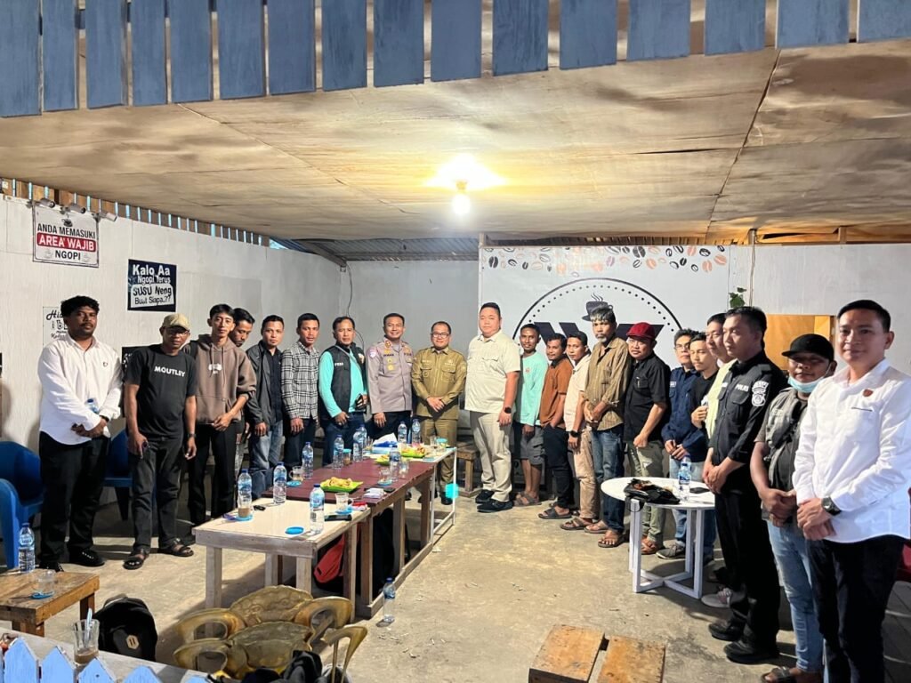 Buol, mediabusernews.com, – Dalam rangka jalin silaturahim antar insan Pers Kapolres Buol, AKBP. Irwan, SIK, MH, Mtr, Opsla, bersama Bupati Buol H.Risharyudi Triwibowo Timumun MM, Ketua DPRD Buol Ryan Nathaniel Kwendy, bertempat di warkop karaeng Kelurahan Leok II Kecamatan Biau Buol Sulteng senin, 13/10/2025. Telah menggelar ngopi bareng sambil diskusi berjalan penuh akrab, terkait kamtibmas dan program lain yang telah dilaksanakan Polres Buol saat ini, terutama terkait ketahanan pangan
