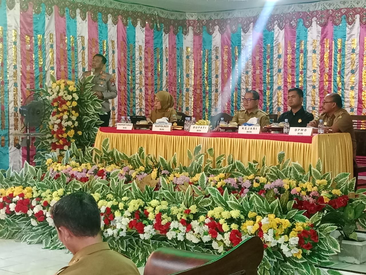 Kapolres Buol Irwan dalam sambutanya menuturkan Kamtibmas kondusif warga sejahtera, olehnya ada beberapa poin penting yang berfokus pada upaya pencegahan terjadinya pelanggaran hukum dan peningkatan kesejahteraan dan sedini mungkin dapat menciptakan rasa aman dan nyaman agar keamanan bersama tetap terjaga dan kondusif, tegasnya.