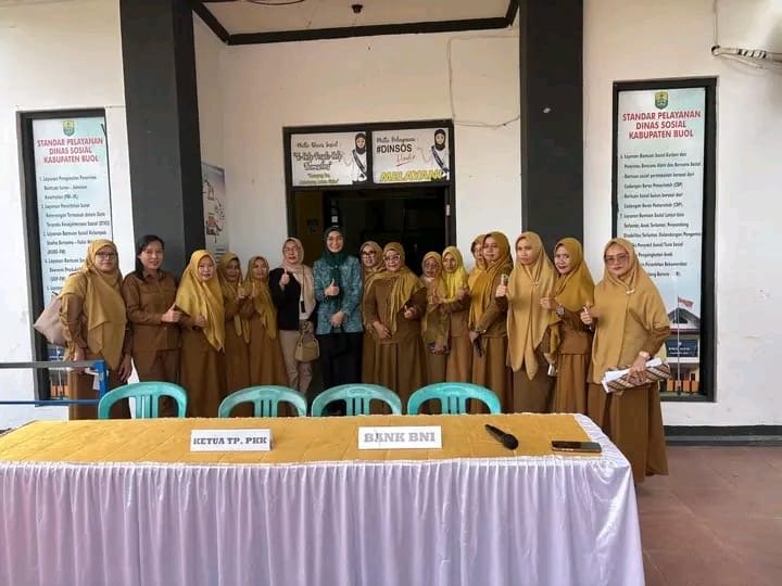 Dalam kegiatanya Ketua TP-PKK Kabupaten Buol didampingi Kepala Dinas Sosial Kabupaten Buol Asmayudin Gontjing dan pegawai BNI dan sejumlah ASN dilingkup Dinsos Buol.