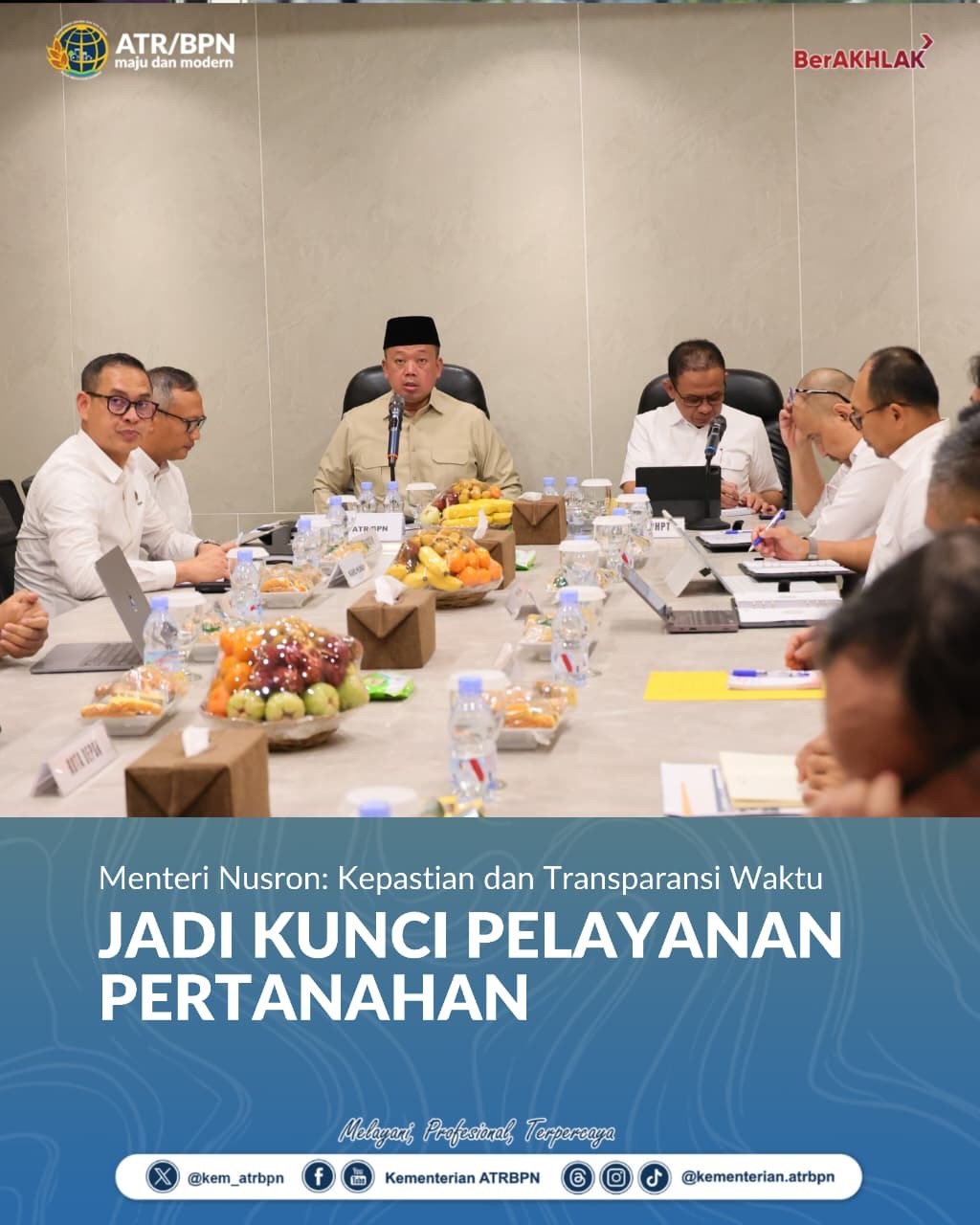 Bogor, mediabusernews.com, – Menteri Agraria dan Tata Ruang/Kepala Badan Pertanahan Nasional (ATR/BPN), Nusron Wahid, menegaskan bahwa pelayanan pertanahan harus berorientasi pada kepastian dan transparansi waktu demi meningkatkan kepuasan masyarakat.