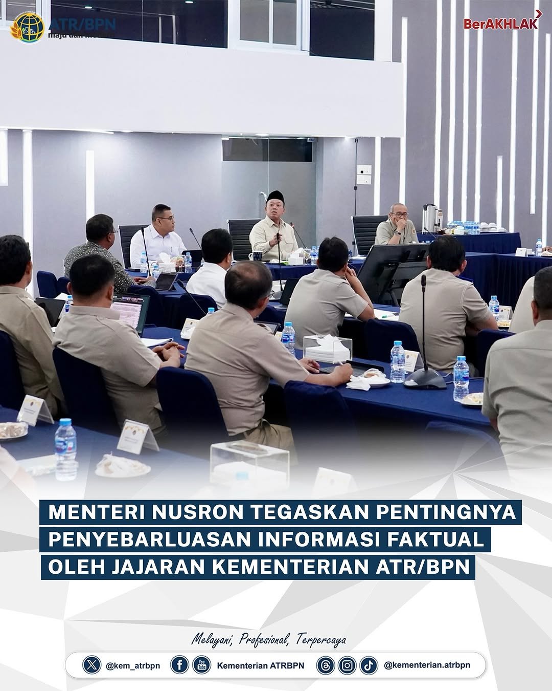 Jakarta, Media Buser News.com, – Di era media sosial saat ini, informasi fiktif kerap beredar luas di masyarakat. Untuk mengantisipasi hal tersebut, Menteri Agraria dan Tata Ruang/Kepala Badan Pertanahan Nasional (ATR/BPN), Nusron Wahid, meminta seluruh jajaran Kementerian ATR/BPN untuk aktif menyampaikan informasi yang faktual kepada masyarakat.