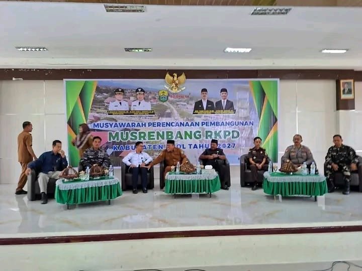 Buol, mediabusernews.com, Pemerintah Kabupaten Buol menggelar Musyawarah Perencanaan Pembangunan (Musrenbang) Rencana Kerja Pemerintah Daerah (RKPD) Tahun Anggaran 2027 senin, 20/4, bertempat di Aula Pobokidan Lantai II Kantor Bupati Buol. Kegiatan tersebut dilaksanakan secara hybrid(gabungan tatap muka secara on-line).
