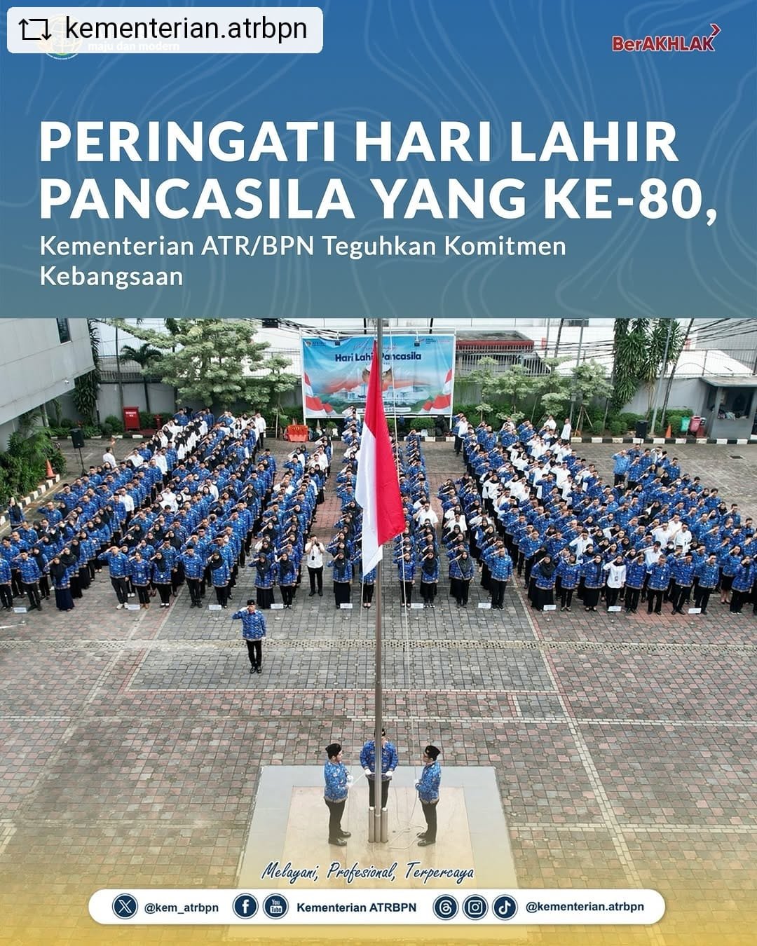 Jakarta, mediabusernews.com, – Kementerian Agraria dan Tata Ruang/Badan Pertanahan Nasional (ATR/BPN) menggelar Upacara Peringatan Hari Lahir Pancasila yang ke-80 pada Senin (02/06/2025). Bertindak sebagai inspektur upacara, yakni Direktur Jenderal Penanganan Sengketa dan Konflik Pertanahan, Iljas Tedjo Prijono.