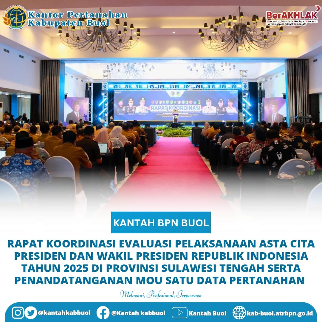 Rapat Koordinasi (Rakor) Evaluasi Pelaksanaan Asta Cita Presiden dan Wakil Presiden Republik Indonesia Tahun 2025 serta Penandatanganan Memorandum Of Understanding (Mou) “Sulteng Satu Data Pertanahan”