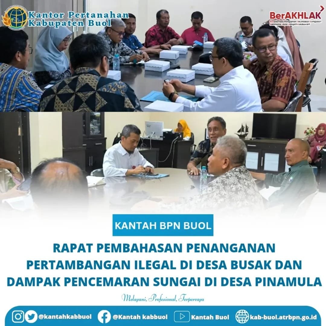 Buol, mediabusernews.com, Kamis (13/11) – Pemerintah Kabupaten Buol menggelar rapat untuk membahas maraknya aktivitas pertambangan ilegal di Desa Busak yang telah mengakibatkan pencemaran sungai di Desa Pinamula. Rapat ini digelar menindaklanjuti laporan masyarakat Desa Pinamula yang diwakili oleh Kepala Desa setempat. Dalam laporannya, disampaikan keluhan masyarakat bahwa aktivitas pertambangan emas dan galian C di Desa Busak telah menyebabkan air sungai menjadi keruh, tidak layak konsumsi, dan mengganggu aliran sungai irigasi untuk persawahan.
