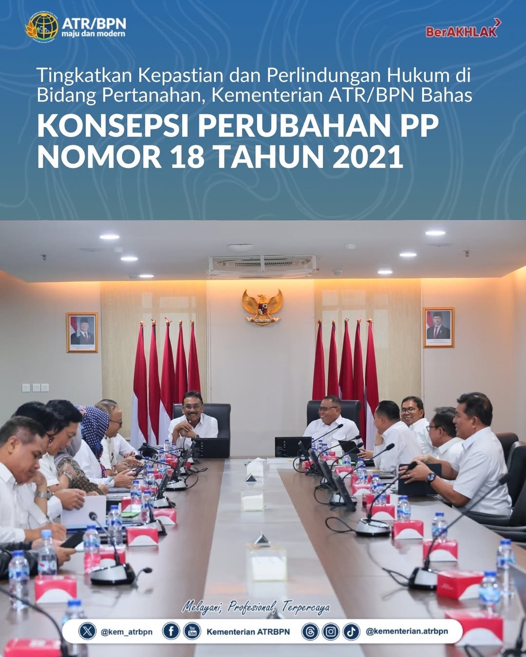 Jakarta, mediabusernrws.com, – Kementerian ATR/BPN menggelar Pembahasan Konsepsi Perubahan PP Nomor 18 Tahun 2021 pada Rabu (07/01/2026) di Jakarta, sebagai upaya memperkuat kepastian dan perlindungan hukum di bidang pertanahan.